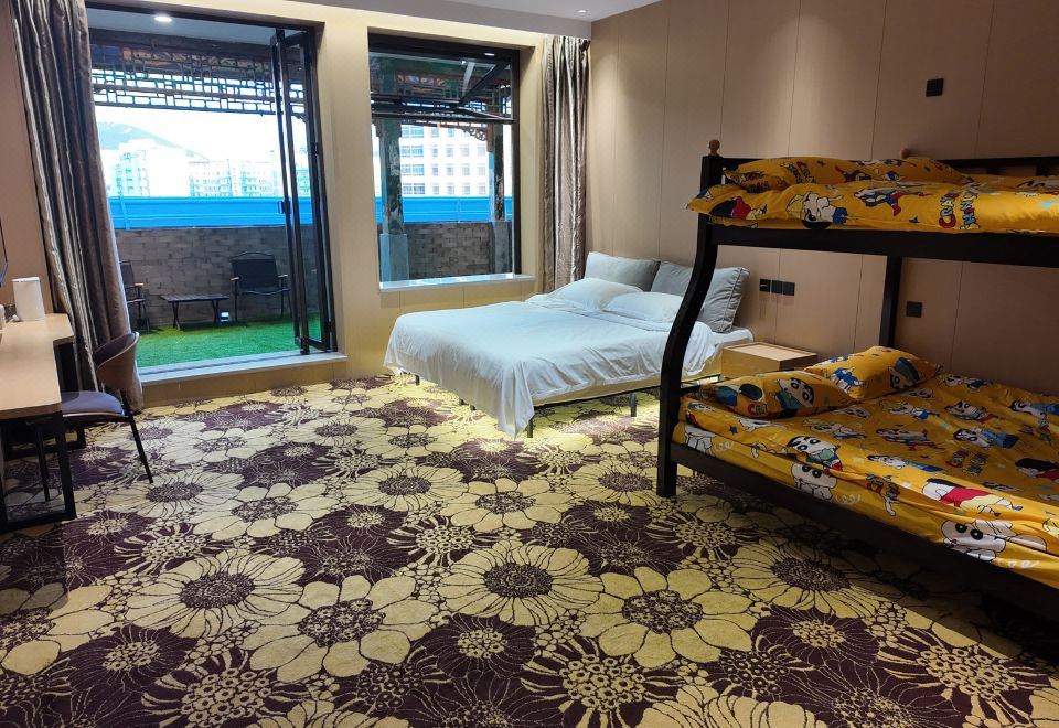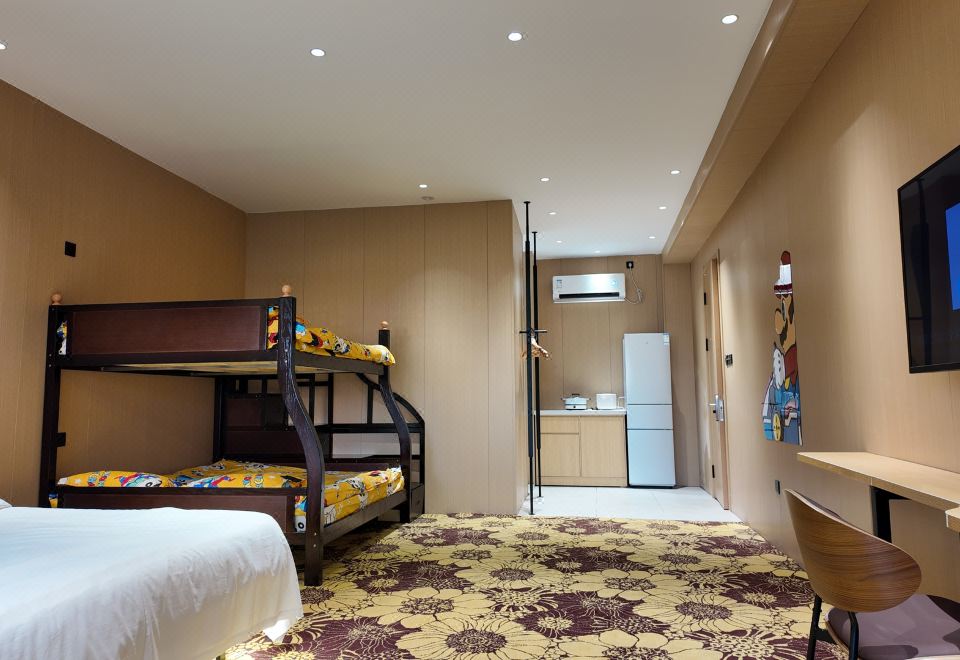 庭院家庭五人房(55寸电视投屏双层床+户外庭院+厨房)